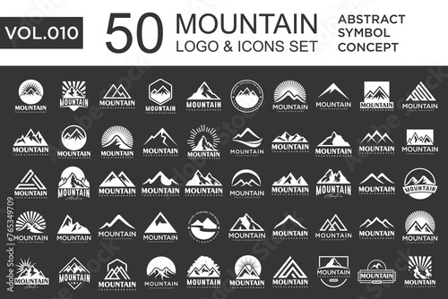 © su, Fototapeta premium Set of abstract mountain logo design template. Vector illustration