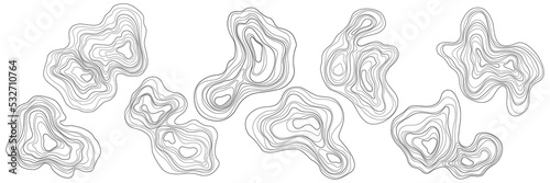 Obraz premium Set of abstract tree rings. Png topographic map design elements. Contour map...