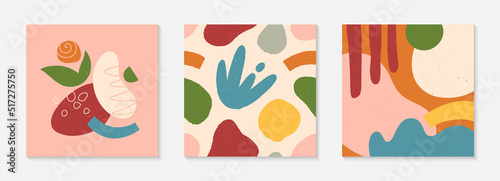 © Xenia Artwork , Naklejka premium Set of abstract vector illustrations with hand drawn various organic shapes.Childish seamless pattern.Trendy artistic contemporary designs for prints,flyers,banners,invitations,branding design,covers