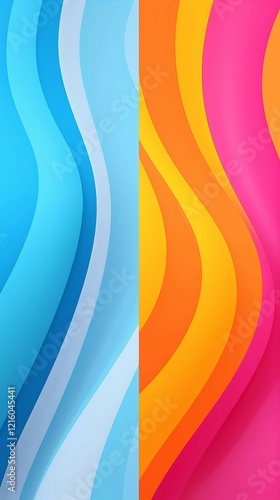 © Digital Waves, Fototapeta premium Set of abstract yellow, pink, blue curve wave lines stripes textures background