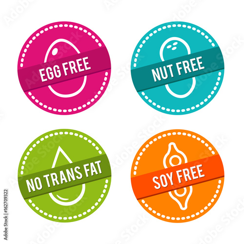 Fototapeta premium Set of Allergen free Badges. Egg free, Nut free, No Trans Fat, Soy free....