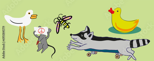 © Anna, Fototapeta premium set of animal characters in a vector with flat style. illustration objects set for motion postcards posters cover stickers advertising