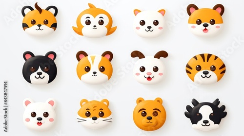 © AITTHIPHONG, Obraz premium Set of animal faces, face emojis, stickers, emoticons,cartoon funny mascot characters face set