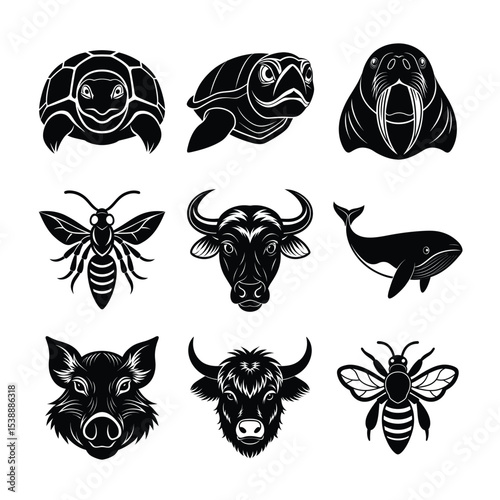 © Zegonnath, Obraz premium Set of animal head vector Silhouette illustration