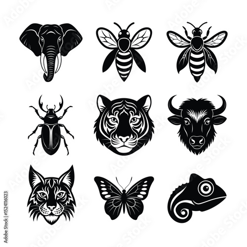 © Krishno, Fototapeta premium Set of animal vector Silhouette illustration