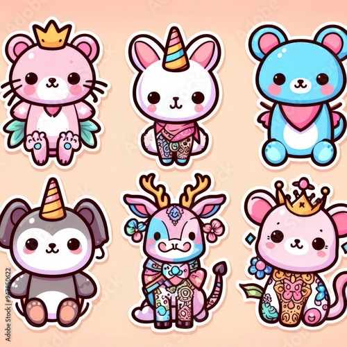 © ThanuDonz, Naklejka premium set of animals