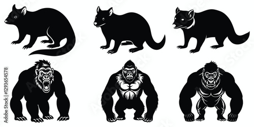 © Designhut1983, Naklejka premium Set of animals, black and white linocut silhouette