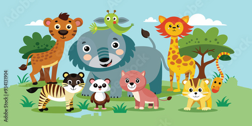 © Dopamine Cucumber X, Fototapeta premium set of animals character vector illustrations