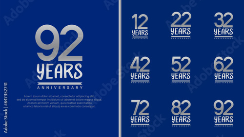 Naklejka premium set of anniversary logo silver color number on blue background for celebration