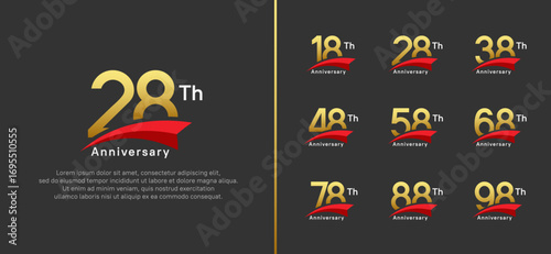 © akhmad, Naklejka premium set of anniversary logo style red ribbon. vector design golden color for celebration