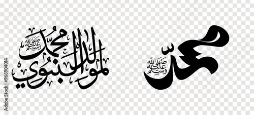 Obraz premium Set of Arabic calligraphy Islamic Mawlid al-Nabi for design element.