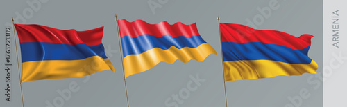 © kora_ra_123, Naklejka premium Set of Armenia waving flag on isolated background vector illustration