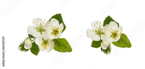 © Ortis, Fototapeta premium Set of arrangements with fresh flowers and leaves of prunus tree isolated on white or transparent background