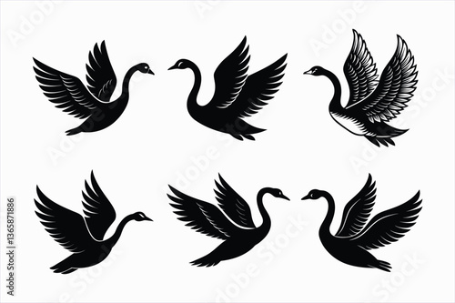 © Suzan, Fototapeta premium Set of ash swan bird vector.