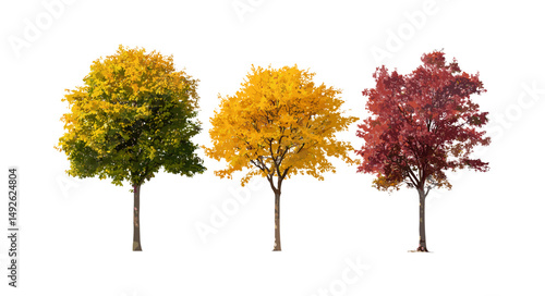 Fototapeta premium Set of autumn Acer tataricum trees isolated png, Tatar maple foliage, fall...