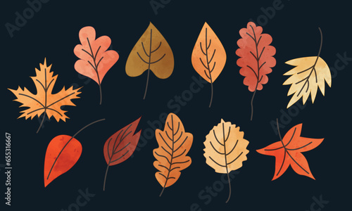 Fototapeta premium Set of autumn elements. Leaves, acorns, autumn flowers