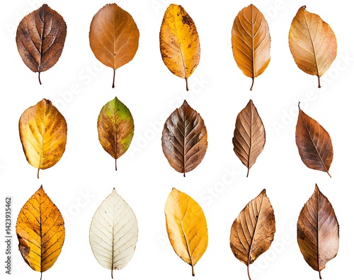 © Tanish, Fototapeta premium Set of autumn leaves isolated on a white background