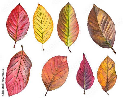 © Tanish, Fototapeta premium Set of autumn leaves isolated on a white background