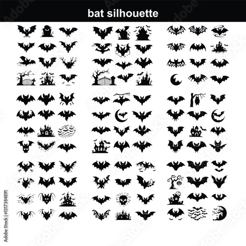 © logodesign11, Naklejka premium Set of bat silhouettes Collection of halloween bats silhouettes