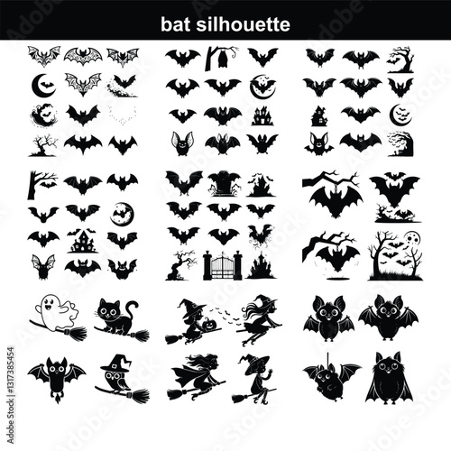 Fototapeta premium Set of bat silhouettes Collection of halloween bats silhouettes