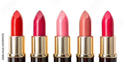 © PNG House, Obraz premium Set of Beautiful Bright Lipsticks on White Background, Stylish, Gorgeous Lipsticks
