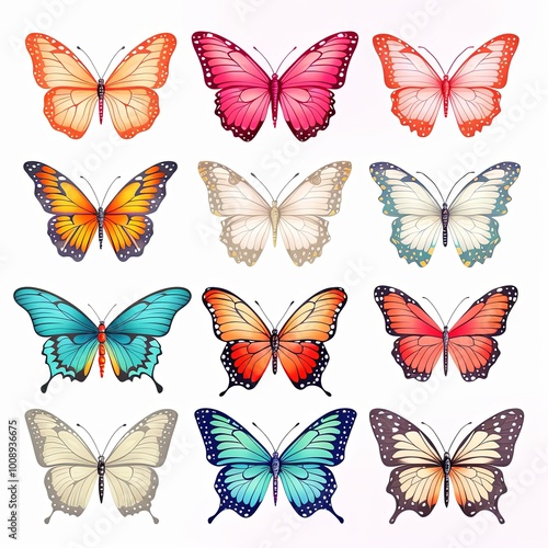 © Irinka Dimkovna, Obraz premium Set of beautiful exotic butterflies with colorful wings on white background