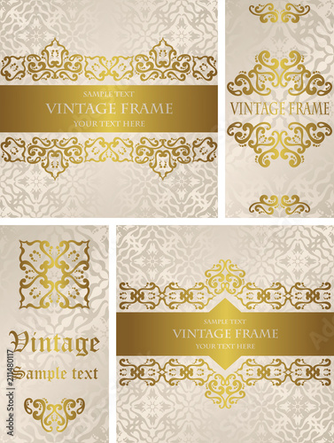 Fototapeta premium Set of beauty vintage cards with decorative gold design