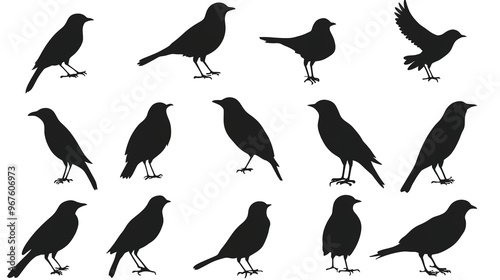 Obraz premium Set of birds silhouettes isolated on transparent background