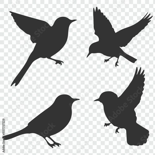 © Hike Studio 444, Fototapeta premium set of birds silhouettes on transparent background. eps 10