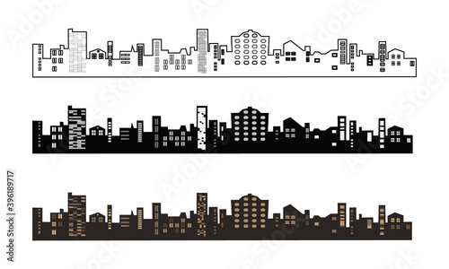 Fototapeta premium Set of black and brown buildings silhouette