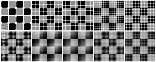 © Asri, Fototapeta premium Set of black and gray checkered geometric patterns isolated on white. Vector illustration.