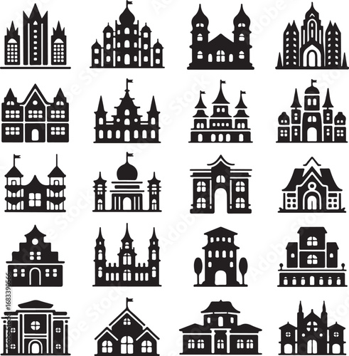 © vector , Obraz premium Set of black and white architectural building and castle icons Keywords: building, architecture