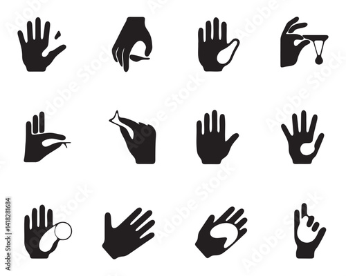 Obraz premium Set of Black and White Hand Icons Showing Various Actions