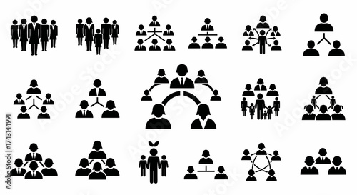Fototapeta premium Set of black and white icons representing organizational charts and team structures