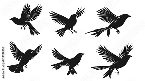 Obraz premium Set of Black Bird Silhouettes in Flight for Design Projects