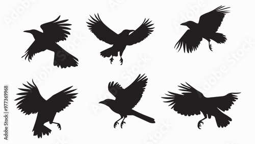© RABBI, Fototapeta premium Set of black bird silhouettes. Vector elements for design.