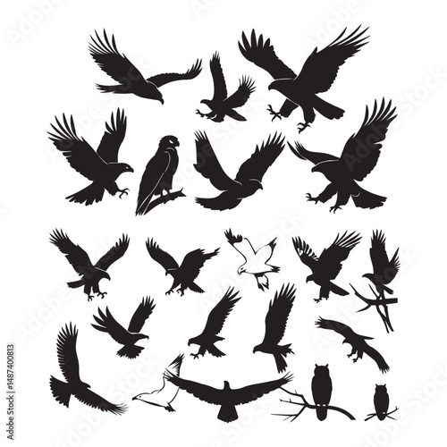 Obraz premium Set of black bird' vector icon silhouettes isolated on white background
