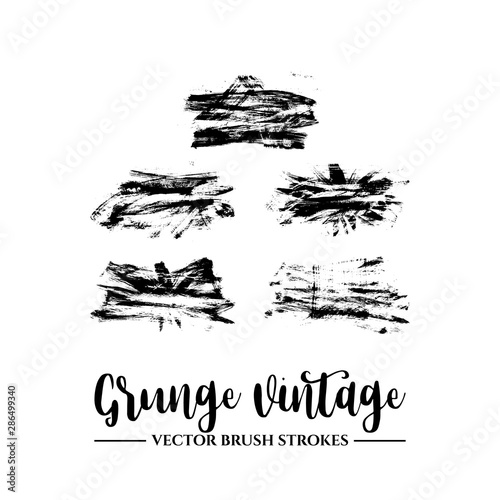 © monum, Fototapeta premium Set of black brush stroke and texture. Grunge vector abstract hand - painted element. Underline and border.