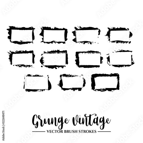 © monum, Obraz premium Set of black brush stroke and texture. Grunge vector abstract hand - painted element. Underline and border.
