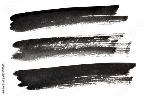 © Roman Sigaev, Fototapeta premium Set of black ink brush strokes