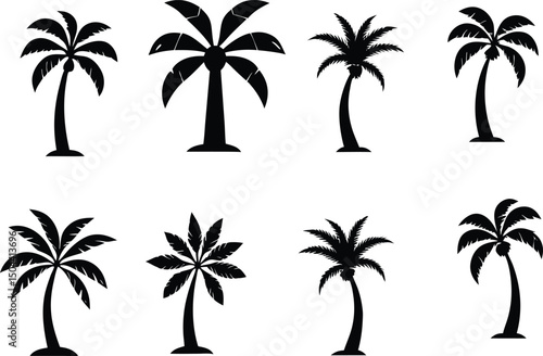 Obraz premium Set of Black Palm Tree Silhouettes Isolated on White Background