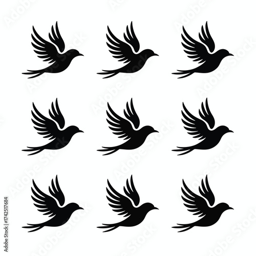 © Vector Art, Fototapeta premium Set of 9 black silhouette flying birds vector illustration scalable icon graphic design element silhouette vector illustration white background