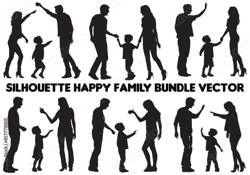 © MDHABIBUR, Obraz premium set of black silhouette happy family