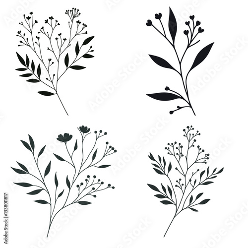 © TOWHIDUL ISLAM, Naklejka premium set of black silhouettes of leaves