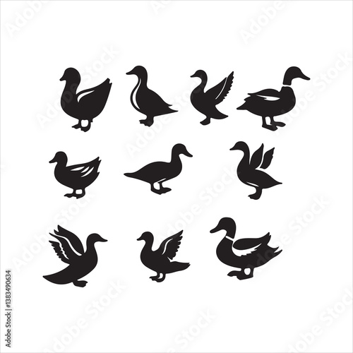 © SYED, Fototapeta premium set of black silhouettes of swans birds