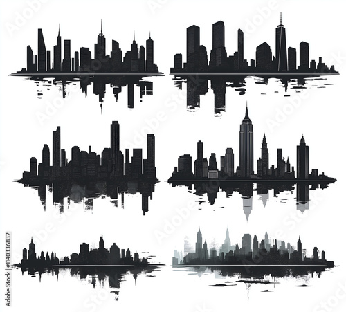 © Anuson, Fototapeta premium set of black silhouettes of the City skyline