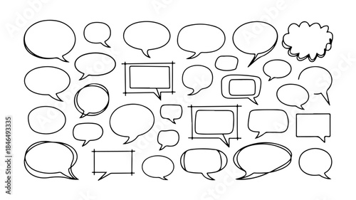 © Sabit, Obraz premium Set of blank speech bubbles is presented as a single, continuous line drawing.