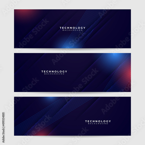 Fototapeta premium Set of blue futuristic science technology network particles waves lines mesh AI banner background. Vector abstract graphic design banner pattern background web template.