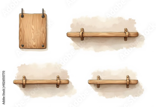 © Mahmudul, Naklejka premium Set of bookshelves with different colourful books isolated on white