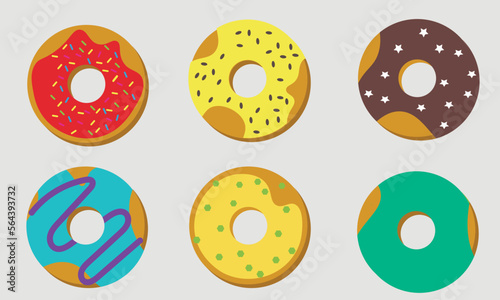 © Алена Мухина, Fototapeta premium Set of bright donuts with sprinkles